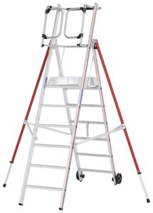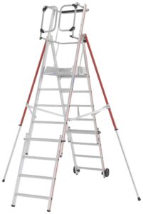 GÜNZBURGER Aluminium Podestleiter fahrbar, klappbar mit schmaler Quertraverse 52705