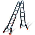 Das Beste an den Multipositionsleitern von Little Giant ist, dass Sie verschiedene Aufgaben mit einer Leiter erledigen können. Diese Vielzweckleiter kann als Treppenleiter, Stehleiter, 90grad Leiter oder als Anlegeleiter genutz werden. Ebenfalls können Sie mit Hilfe der Trestle Brackets aus Ihrer Leiter zwei einzelne Arbeitsböcke bauen. In Verbindung mit unseren Teleskopbohlen haben Sie somit ein Arbeitsgerüst.