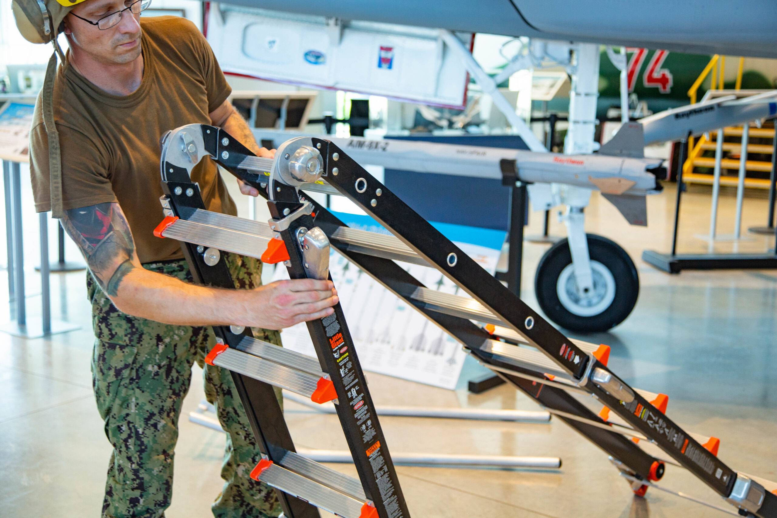 Dank der weit ausgestellten Holme bekommt diese Leiter eine unglaubliche Standfestigkeit.
