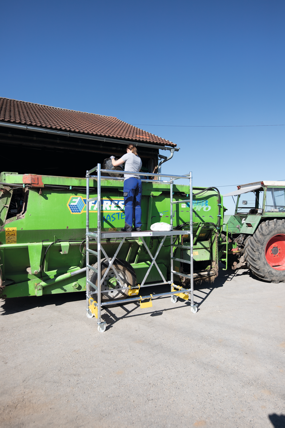 Die trittsichere Plattform ist mit einer großen Durchstiegsluke