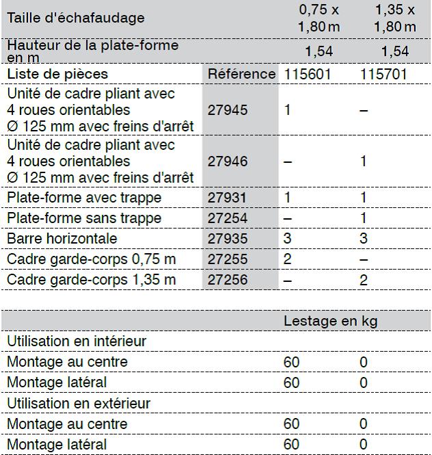 – Gerüstgrößen: 0,75 x 1,80 m / 1,35 x 1,80 m