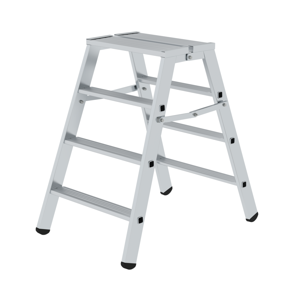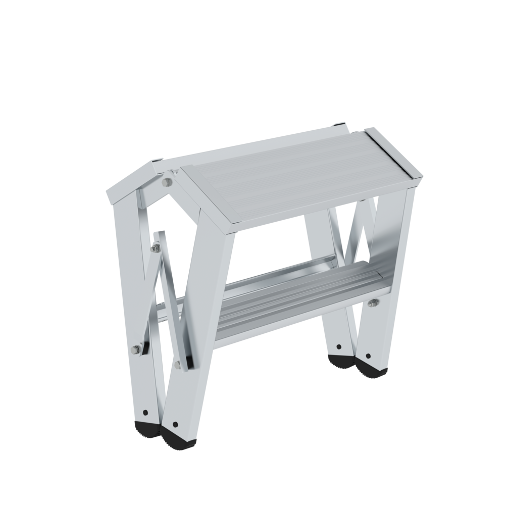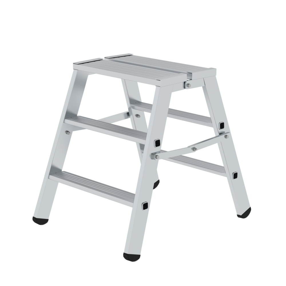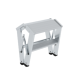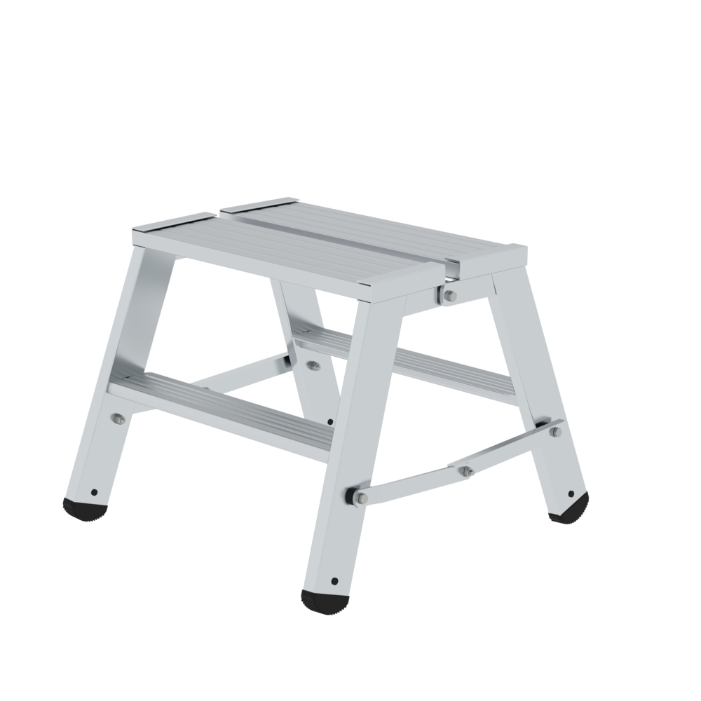 Standfläche aus geriffeltem Aluminiumprofil, Kunststoffschuhe, Podest klappbar