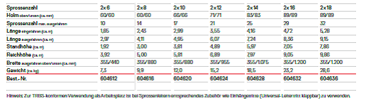 ∙ Sprossen aus stark profiliertem Strangpressprofil,