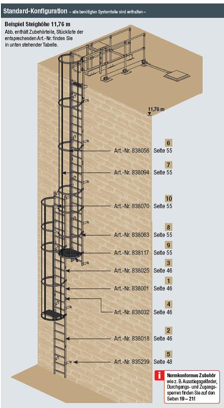 Ab 10 m Steighöhe ist die Steigleiter versetzt auszuführen.