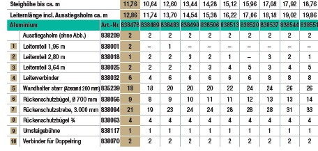Ist aus baulichen Gründen eine Versetzung nicht möglich, so kann die Leiter auch einzügig über 10 m ausgeführt werden. Die Umsteigeplattform ist durch den klappbaren Zwischenboden zu ersetzen.