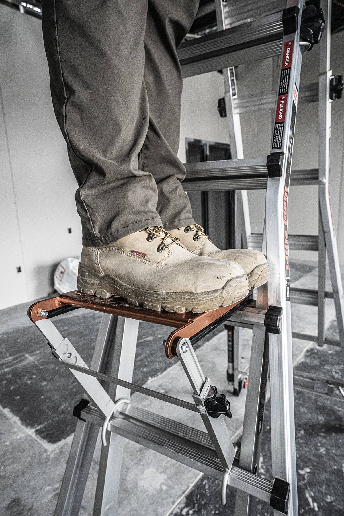 Der Einhängetritt ist bis 150Kg belastbar und universell für alle Sprossenleitern einsetzbar.