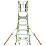 Die Safety Cage Plattformleiter ist jetzt mit verstellbaren Auslegersystemen für zusätzliche Stabilität und Sicherheit ausgestattet.
