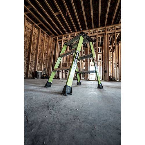 Die Nylon Spreizgurte emöglichen ein schnelles Aufstellen der Leiter. Die Sure Step ist mit Kasten-Stufen ausgestattet und daher bequem zum Auf- und Absteigen.