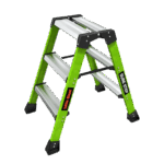 Die Stufenstehleiter Sure Step ist aus nicht elektrisch leitenden Fiberglas gefertigt und daher besonders für das Arbeiten an und mit elektrischen Anlagen geeignet. Durch die Verwendung der grünen Signalfarbe ist die Sichtbarkeit der Leiter erhöht, was das Unfall Risko senkt.